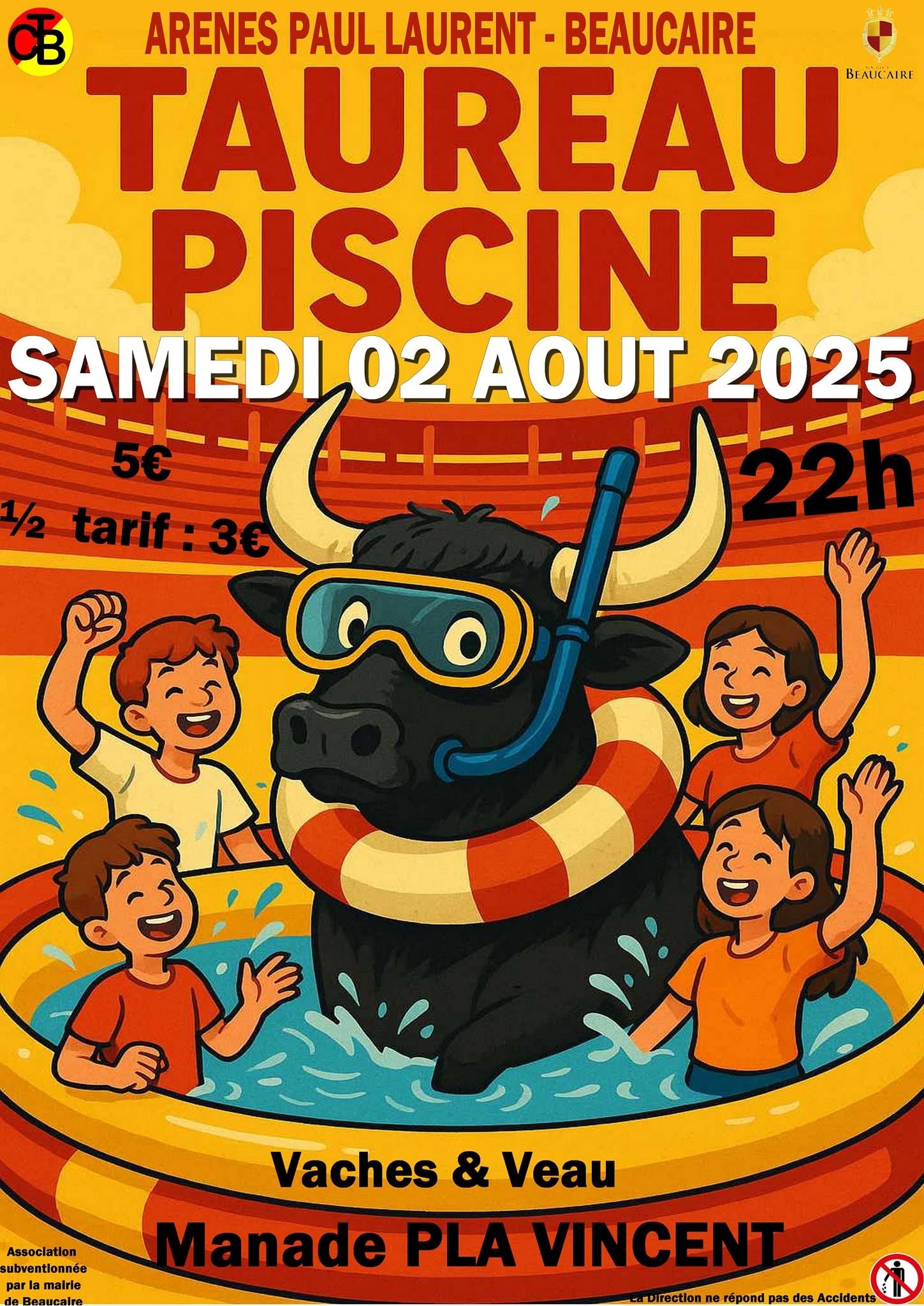 Arènes de Beaucaire Rue du Champ de Foire, Beaucaire, Gard, FranceSamedi 2 août 22h00 - Taureau Piscine 🐂💦 Jeux et animations pour enfants 🎉👦👧 Vaches & Veau 🐄