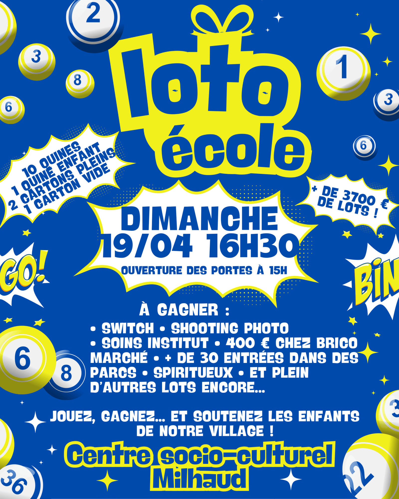 Octobre 2025 🎉 DIM 19/10/25 : Don du sang – Inter associations, Salle des fêtes 🐂 SAM 25/10/25 : Toros y Fiesta, 20h30, Salle des fêtes 🐂 DIM 26/10/25 : Toros y Fiesta, Salle des fêtes Novembre 2025 🎵 DIM 02/11/25 : La Diane Milhaudoise, Centre socio culturel 🍽️ DIM 09/11/25 : Club des Aînés « Jamai ü vieill », Centre socio culturel 🔥 SAM 15/11/25 : Marché de Noël (La Pastorale), Centre socio culturel 🔥 DIM 16/11/25 : Marché de Noël (La Pastorale), Centre socio culturel 🎉 DIM 23/11/25 : Milhaud Mille Dons, Centre socio culturel 🎉 DIM 30/11/25 : Les Anciens Combattants, Centre socio culturel Décembre 2025 🎉 DIM 07/12/25 : Don du sang, Salle des fêtes 🔥 DIM 07/12/25 : Marché de Noël (Milhaud Mille Dons), Centre socio culturel 🎶 DIM 14/12/25 : Les Vieux Crampons, Centre socio culturel 🎵 DIM 21/12/25 : La Pastorale, Centre socio culturel Janvier 2026 🎵 DIM 04/01/26 : Chevaliers Occitanie, Centre socio culturel 🏉 DIM 11/01/26 : Rugby Club Milhaudois, Centre socio culturel 📚 DIM 18/01/26 : F.C.P.E, Centre socio culturel ✝️ DIM 25/01/26 : La Paroisse Catholique, Centre socio culturel Février 2026 ✝️ DIM 01/02/26 : Église Protestante, Centre socio […]
