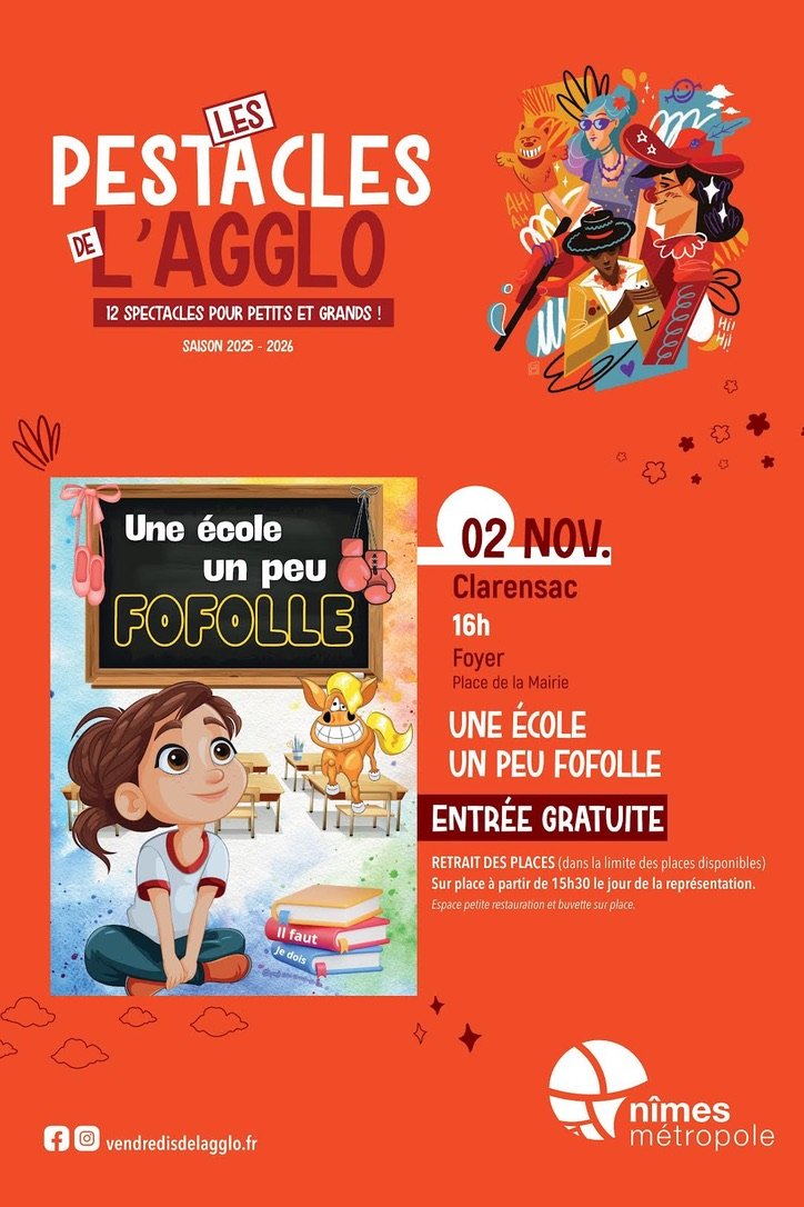 Foyer - Clarensac Place de la Mairie, Clarensac, Occitanie, FranceDimanche 2 novembre 2025 16h00 - Une école un peu fofolle 🎭