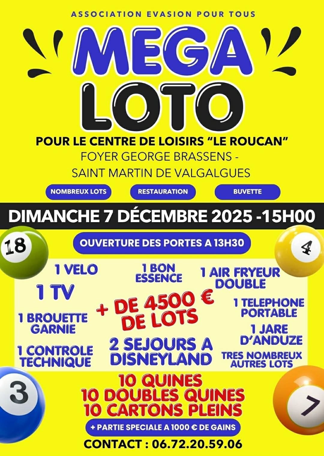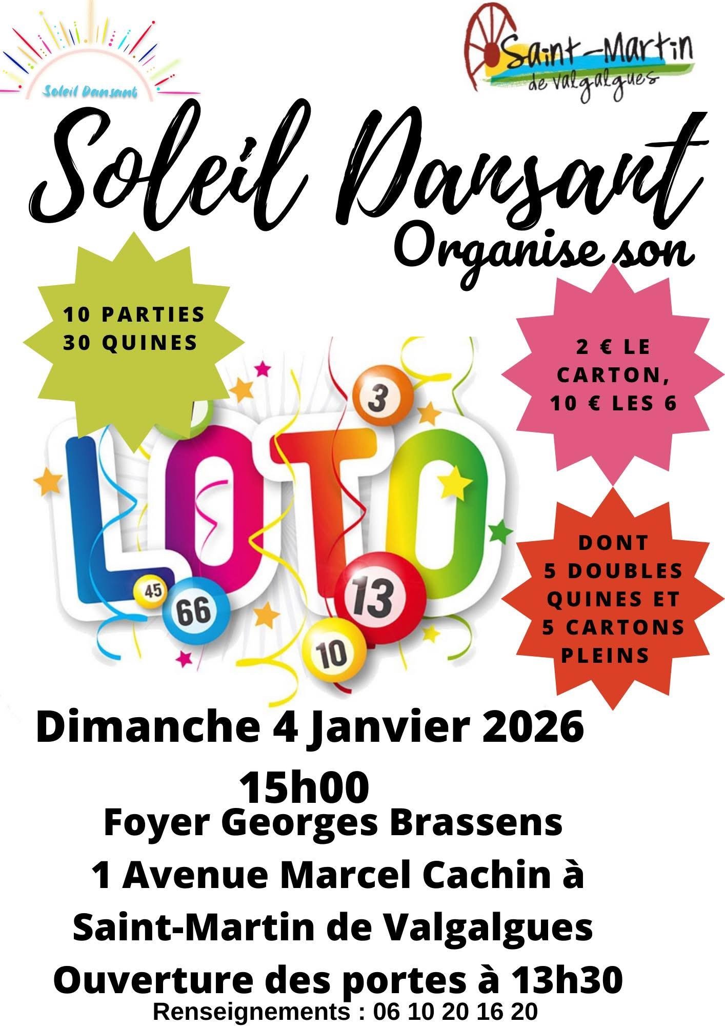 Samedi 24 Janvier 2026 18h30 : Ouverture des portes 🎉 20h00 : Début du Méga Loto 🐂 Lots à gagner : 1 Week-end Gîte de France 🏡 1 Caisse à outils complète 🛠️ 1 Lavage auto complet intérieur/extérieur 🚗 1 Corbeille garnie à 150€ 🍽️ 1 Air Fryer double 🍳 1 Machine Cake Factory 🎂 2 Voyages au Perthus ✈️ 1 Séjour à Disneyland 🎢 200€ Bijoux 💍 + de 4000€ de lots 💰 10 Quines, 10 Doubles Quines, 10 Cartons Pleins 🔥 Partie spéciale à 1000€ de gains 💵