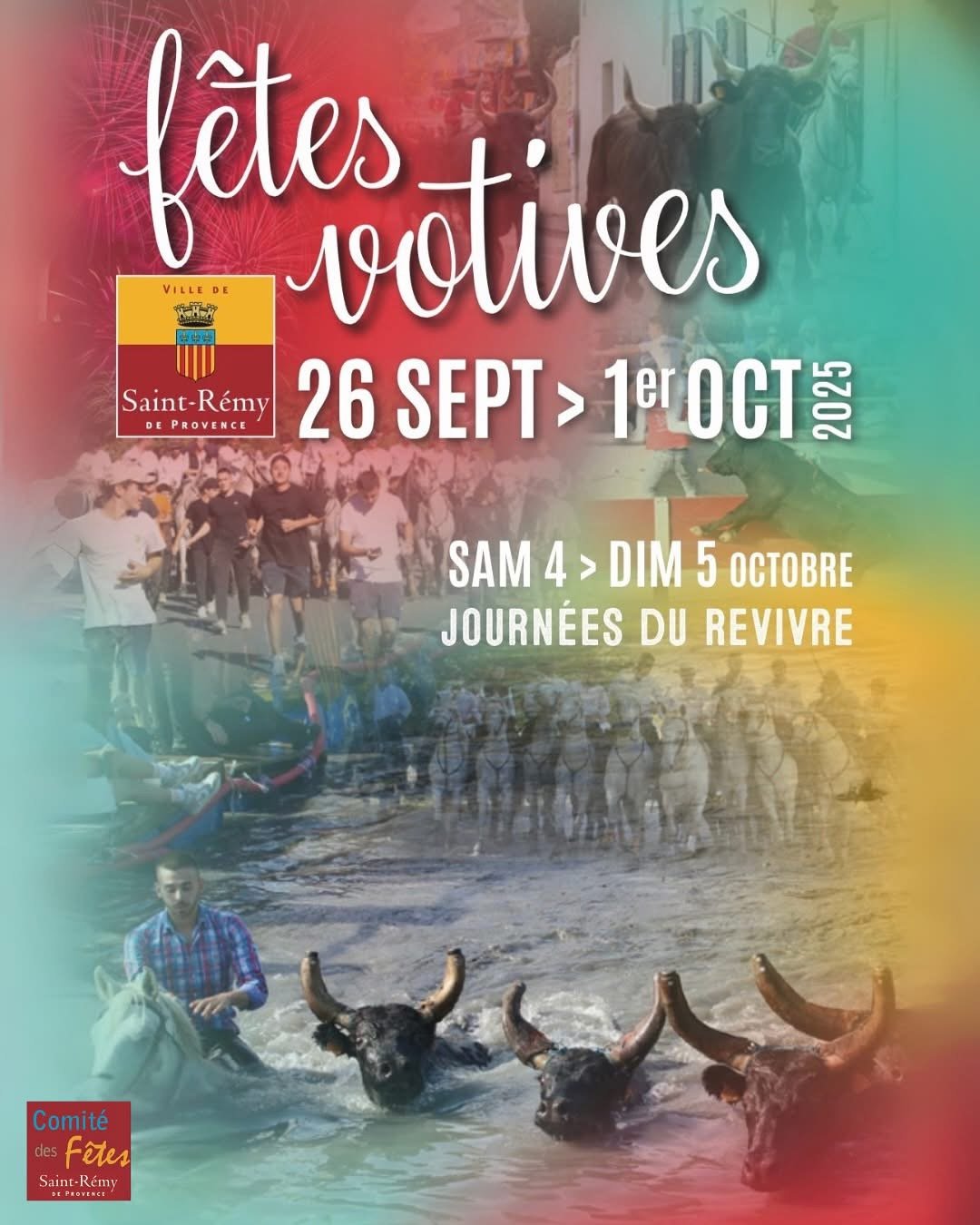 Vendredi 26 septembre 15h30 : Arènes Chomel-Coïnon - COURSE CAMARGUAISE 🎉 19h15 : Rond-point de la Gare - INAUGURATION DE LA STATUE DE CHICHARITO 🎊 20h30 : Place Jules-Pellissier - CONCERT D'OUVERTURE 🎵 Samedi 27 septembre 9h00 : Lac de Barreau - DÉJEUNER - GRILLADES 🍽️ 10h30 : Lac de Barreau - FESTIVAL DE 5 GAZO 🐂 17h30 : Boulevards Gambetta, Marceau - BANDIDO 🐂 20h00 - 23h00 : Parvis de la collégiale - GRAND BAL 🎉 21h00 : Arènes Barnier - BODEGA 🎉 Dimanche 28 septembre 9h00 : Arènes Barnier - DÉJEUNER - GRILLADES 🍽️ 10h30 : Tour de Ville - TRADITIONNELLE ABRIVADO DI BIOU 🐂 14h45 : Arènes municipales Chomel-Coïnon - COURSE CAMARGUAISE 🎉 15h30 : BANDIDO 🐂 Lundi 29 septembre 9h30 : Manade Gros - DÉJEUNER AU PRÉ 🍽️ 11h00 : Départ manade Gros - ABRIVADO LONGUE 🐂 12h30 : Arènes Barnier - Apéro saint-rémois 🎶 15h30 : Arènes Chomel-Coïnon - COURSE CAMARGUAISE 🎉 Après la course : BANDIDO 🐂 Mardi 30 septembre 10h30 : Boulevard Gambetta - ENCIERRO DE TAU 🐂 15h30 : Arènes Chomel-Coïnon - COURSE CAMARGUAISE 🎉 Après la course : BANDIDO 🐂 22h00 : Stade Jan-Léger - SPECTACLE PYROTECHNIQUE 🎆 Mercredi 1er octobre […]