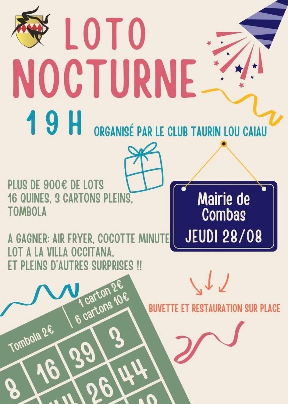 Vendredi 30 mai 2025 17h : Apéritif Musical 18h : Bandido Manade du Gardon Offert pas le Tennis Club de Combas 19h : Repas au foyer communal 21h : Soirée musicale animée par Waltermusic Samedi 31 mai 2025 10h : Petit déjeuner offert par le comité de Crespian 11h : Abrivado Manade du Gardon Offert pas le Tennis Club de Combas 12h : Apéritif musical animé par DJ Boonoh 14h : Jeux pour les enfants organisés par le Club Taurin (Foyer) 14h: Concours de pétanque 18h: Bandido Manade du Gardon Offert pas le Tennis Club de Combas 19h: Apéritif musical animé par DJ Boonoh 21h: Bandido de nuit Manade du Gardon 22h: Soirée musicale animée par DJ Boonoh