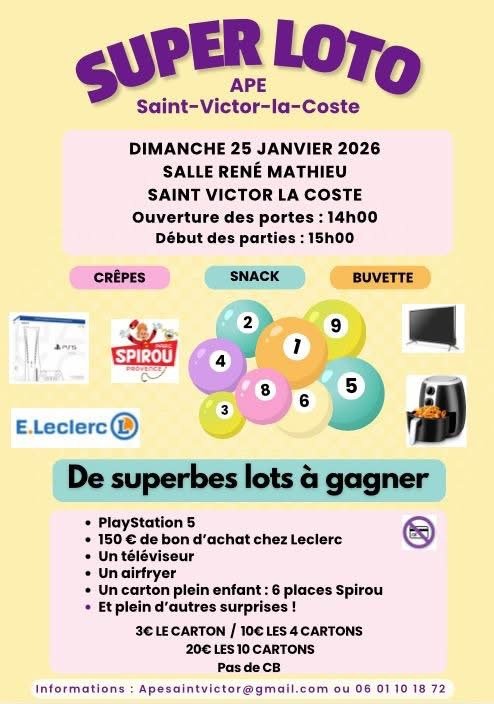 Dimanche 25 Janvier 2026 14h00 : Ouverture des portes 🎉 15h00 : Début des parties de loto 🐂