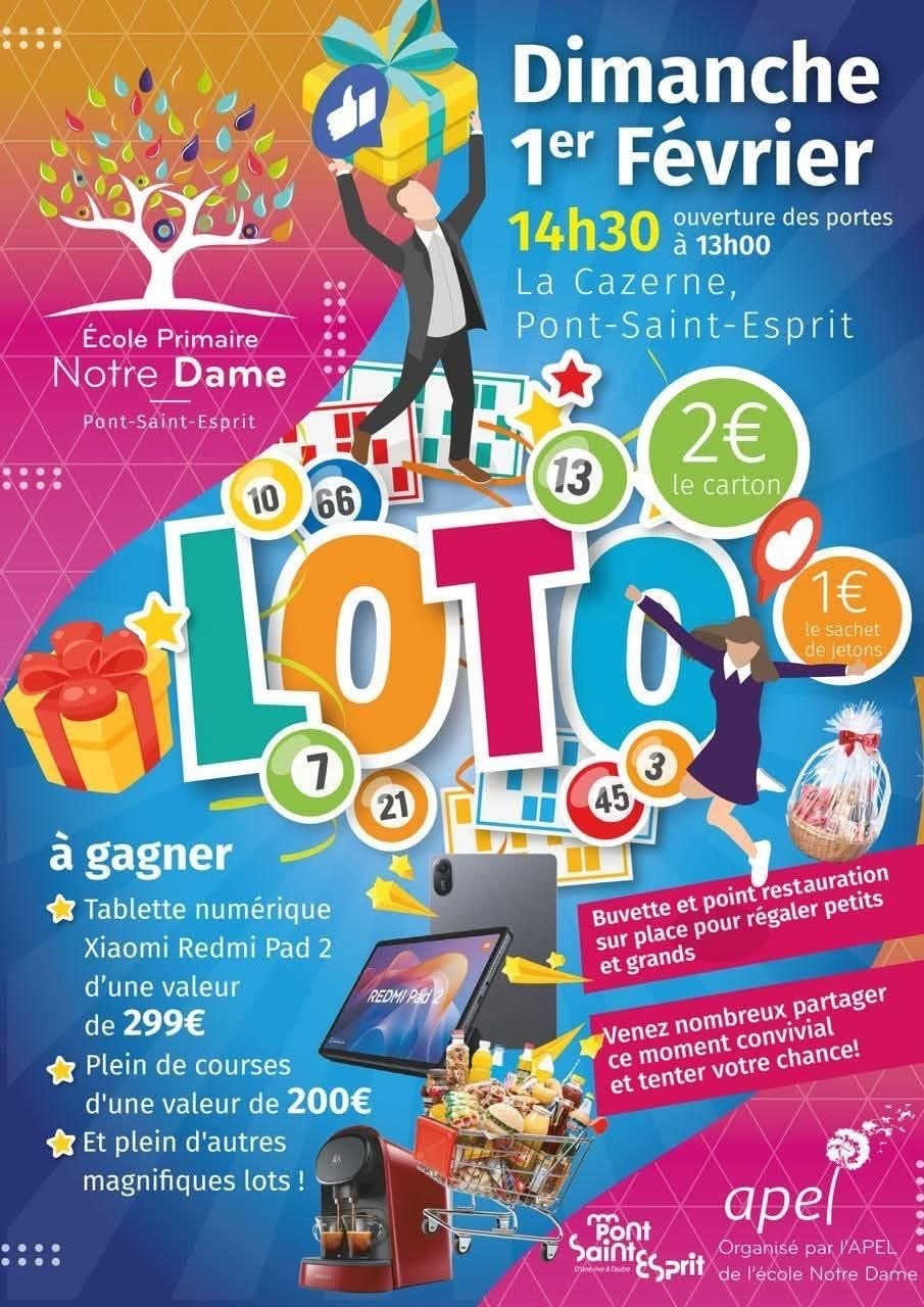 Samedi 31 Janvier 2026 17h30 : Début de l'événement 🎉 8 quines d'une valeur de 80€ 🐂 1 quine pour les enfants 🎵 1 carton plein d'une valeur de 400€ 🍽️ 2 cartons pleins d'une valeur de 200€ 🔥 De nombreux lots : Bons cadeaux dans divers restaurants, bons d'achats et bien d'autres lots... 🎁